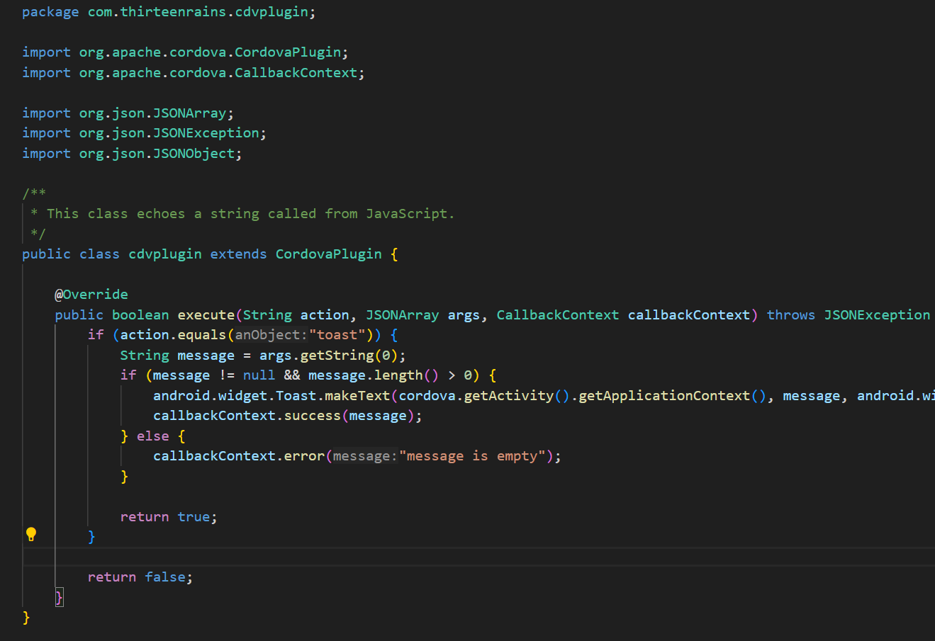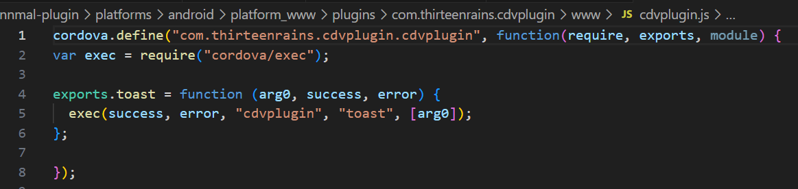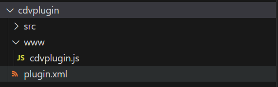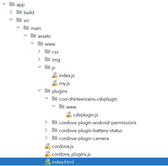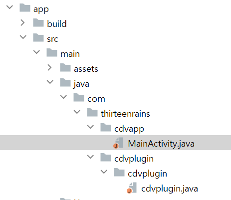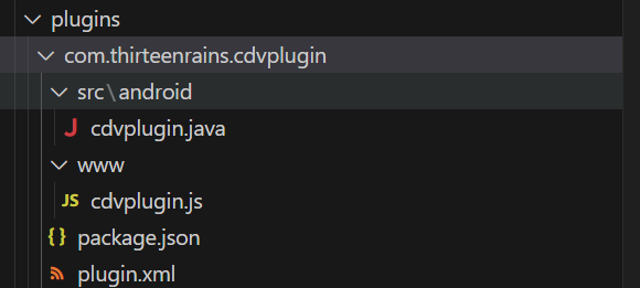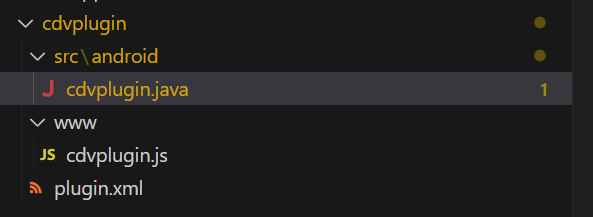 (아래 그림을 보면 cordova plugin 소스 파일인 cdvplugin.java 또한 프로젝트에 포함되어 있는 것을 확인 할 수 있다.